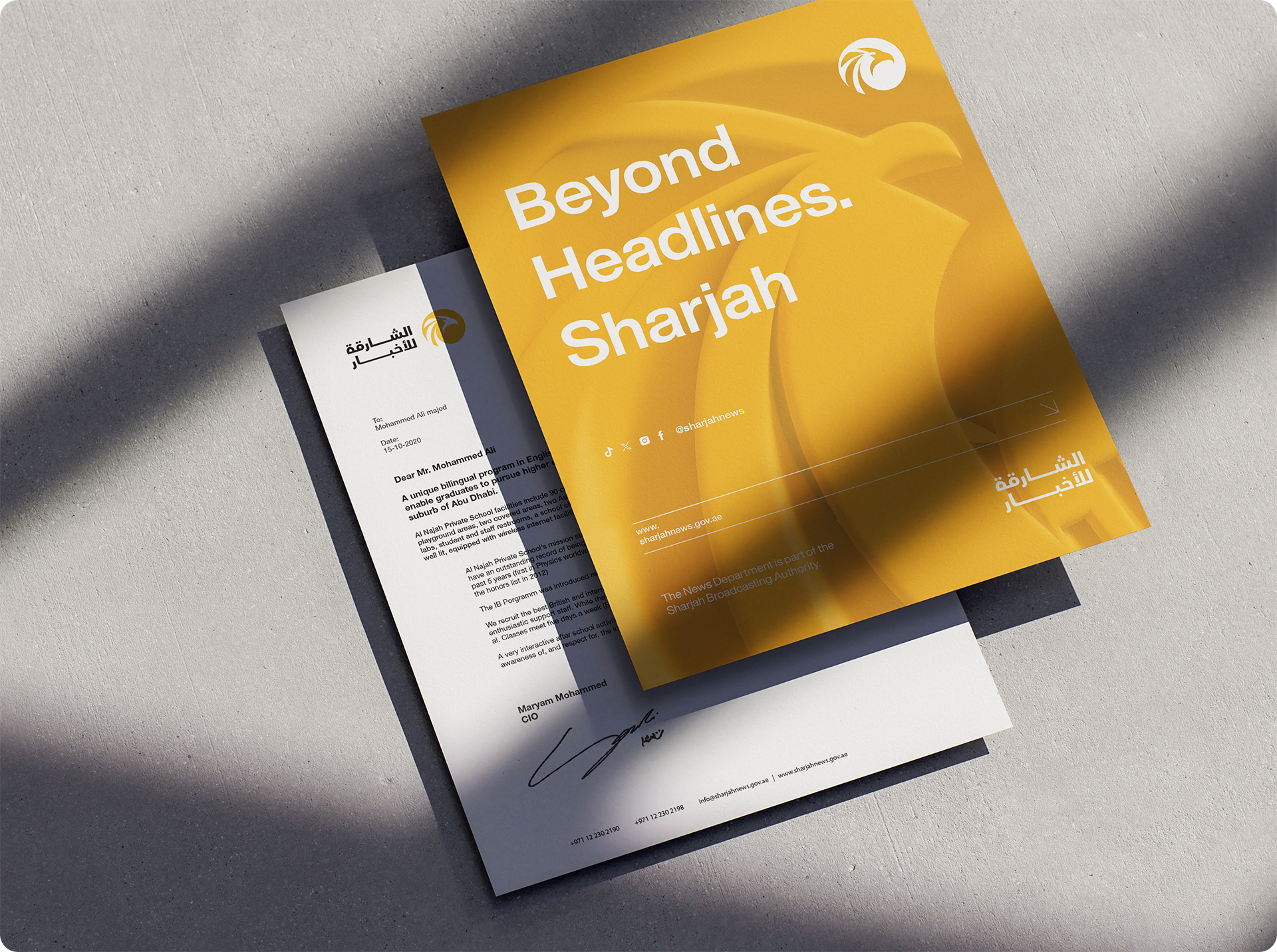 Commissioned by the Sharjah Broadcasting Authority, ejeStudio™ designed a renewed identity for Sharjah News, uniting modern design with cultural authenticity.